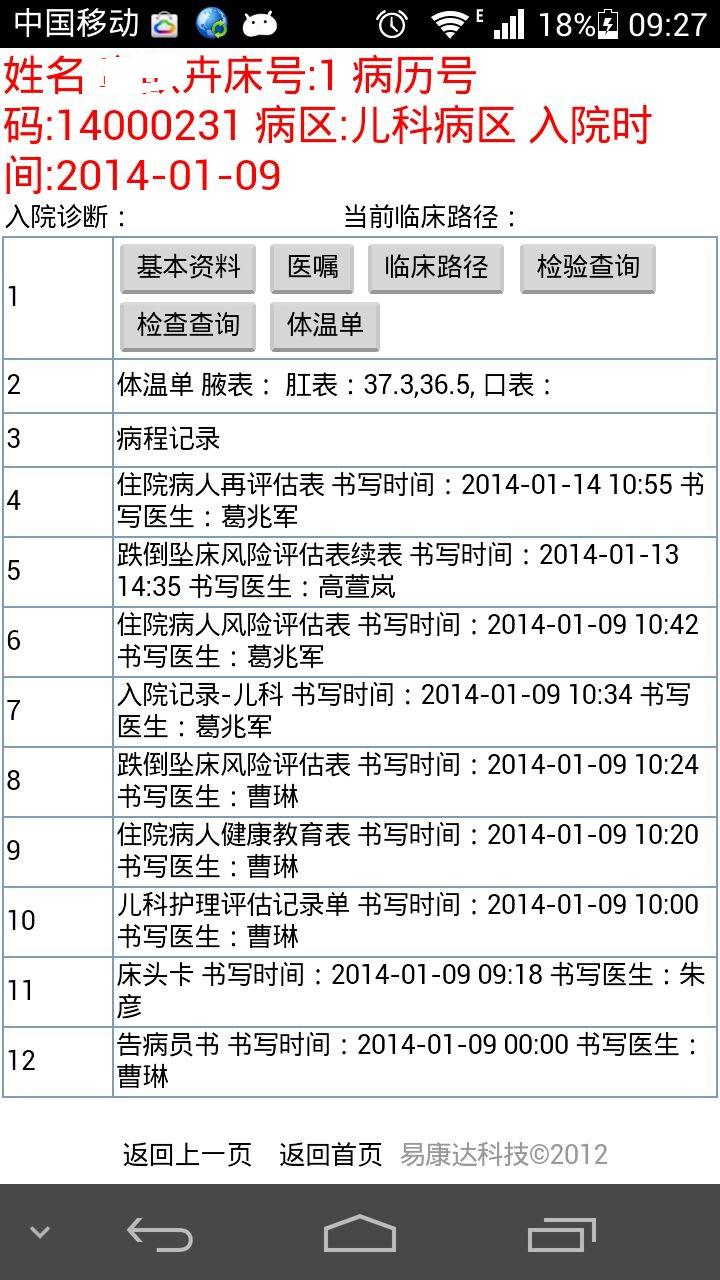 主要项目包括A:病案首页内患者基本信息,如:患者住址、工作单位、联系方式、付款方式等。B:患者历次住院情况,如:所患疾病、治愈情况、用药情况等。C:患者本次入院情况,